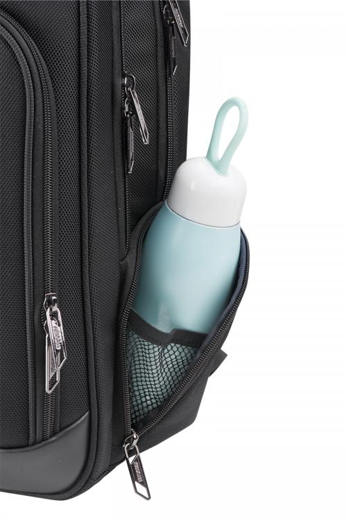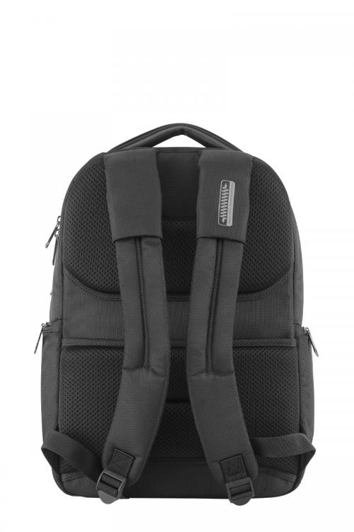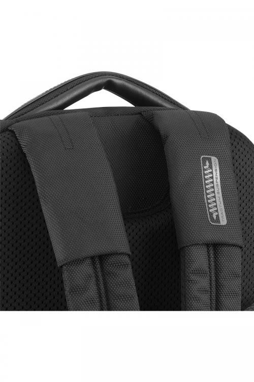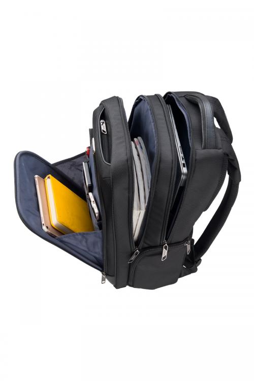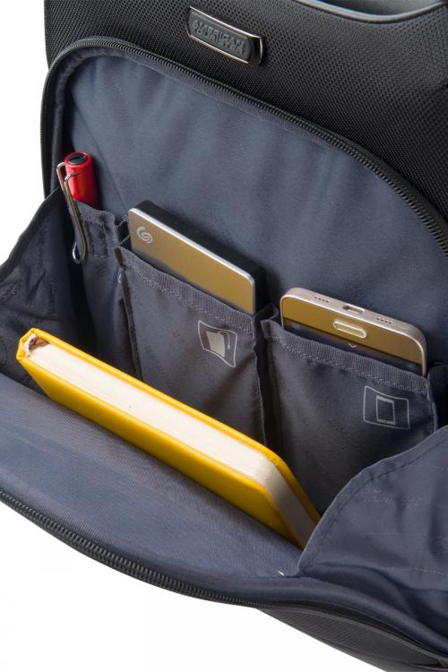 容量約23リットルで1泊程度の出張にも対応可能なバックパック。15インチまでのPC収納に対応しています。 メイン収納は2室に分かれおり、背面側にはPCと周辺機器の収納に便利なポケットがあり、前面側は出張時に着替えを入れるのに便利なシンプルな内装になっています。 内装生地には抗菌加工が施されています。