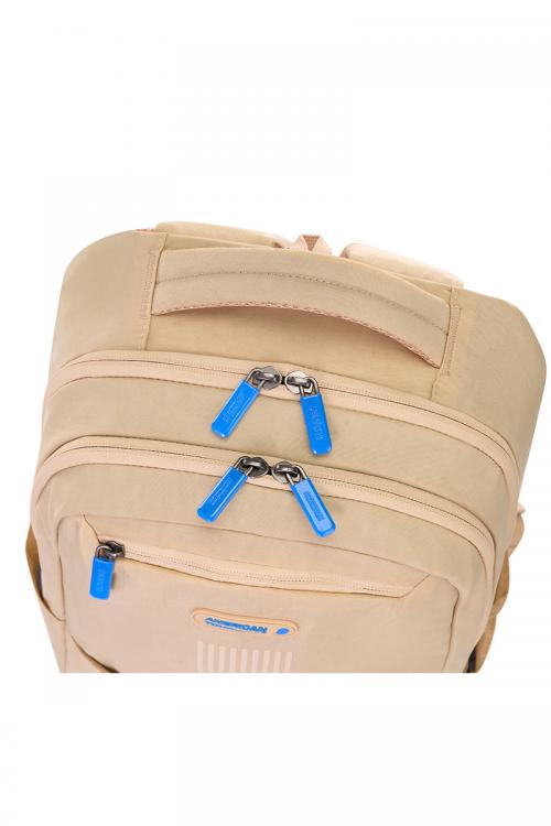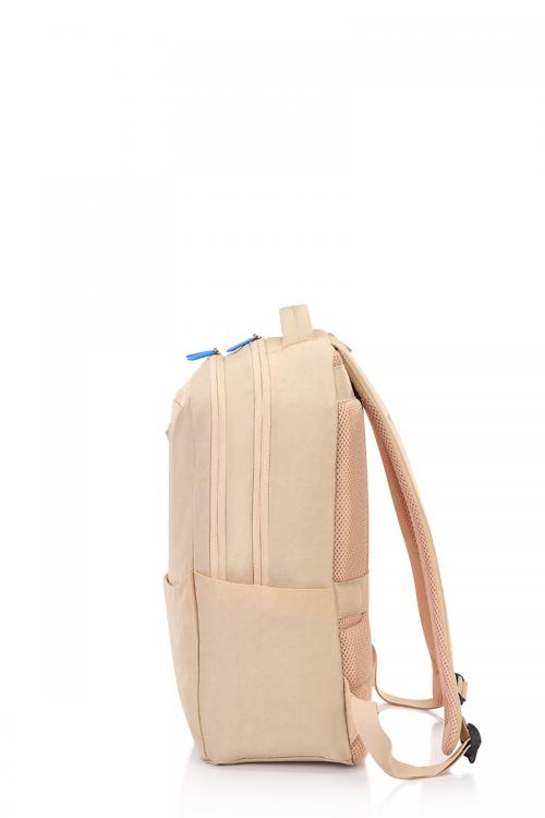 撥水加工がほどこされた、ムラ染めされたシワ感のある生地に、ファスナー引手とロゴにアクセントカラーのパ―ツを組み合わせた、カジュアルな印象のバックパックシリーズです。