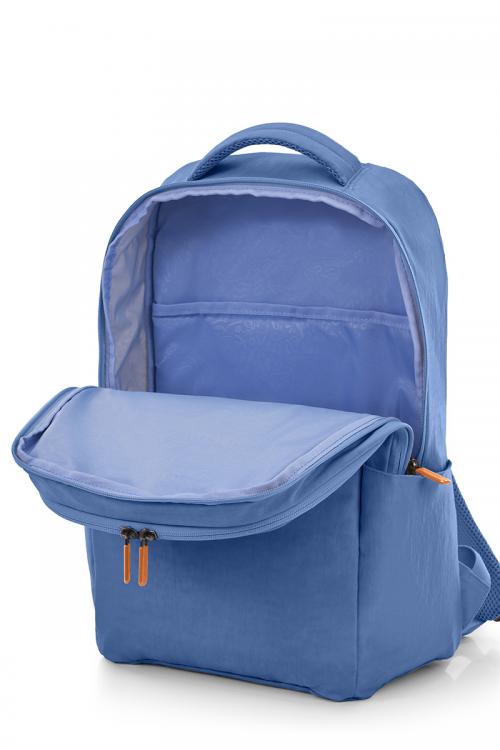 荷物が探しやすい鮮やかな生地があしらわれた内装は、シンプルながら各荷室に大きめのオープンポケットが付属しています。