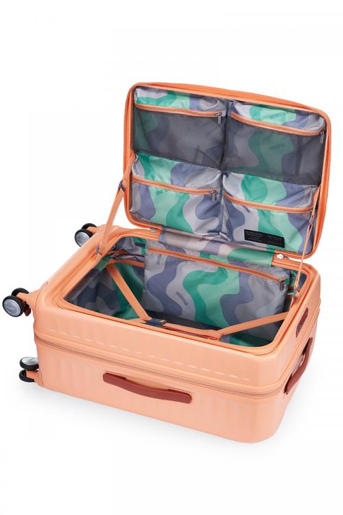 フタを浅く、メイン収納部に厚みをもたせ収納スペースを最大限に確保した独自の設計PlentiVol™により、パッキングのしやすさはもちろん、スペースが限られた場所でもコンパクトに開閉することができます。荷崩れを防ぐクロスストラップが付属し、そのほかに小物などが収納可能なポケットを備えています。
