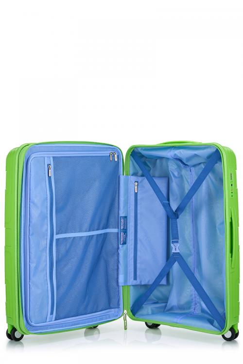 機能的な設計の内装には、左側にはディバイダーを備え、右側には荷崩れ防止のクロスストラップが付属するほか、小物などが収納できる便利なポケットも付属しています 。また、4輪ダブルホイールが凹凸のある道でもスムーズな走行性を発揮。
