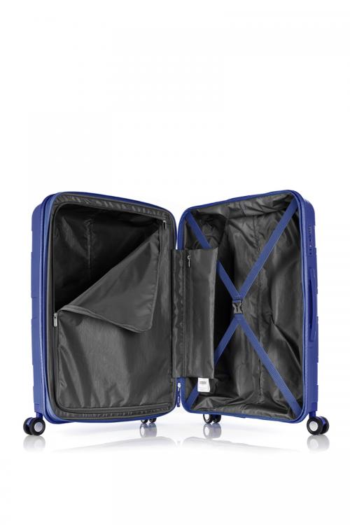 機能的な設計の内装には、左側にはディバイダーを備え、右側には荷崩れ防止のクロスストラップが付属するほか、小物などが収納できる便利なポケットも付属しています 。また、4輪ダブルホイールが凹凸のある道でもスムーズな走行性を発揮。