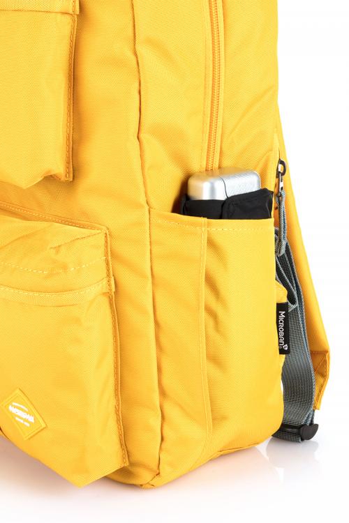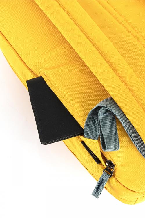 大きなフロントポケットは、小物以外にもかさばるビジネスツールなどの収納にも適しており、取り出しやすい便利な設計になっています。荷物が探しやすい鮮やかなカラーの内装生地には抗菌加工が施されており、PCなどが入るオープンポケットを装備。外側には傘などが入るサイドポケットと背面にセキュリティポケットも付属しています。