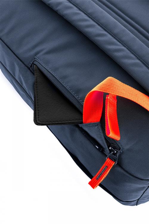 大きなフロントポケットは、小物以外にもかさばるビジネスツールなどの収納にも適しており、取り出しやすい便利な設計になっています。荷物が探しやすい鮮やかなカラーの内装生地には抗菌加工が施されており、PCなどが入るオープンポケットを装備。外側には傘などが入るサイドポケットと背面にセキュリティポケットも付属しています。