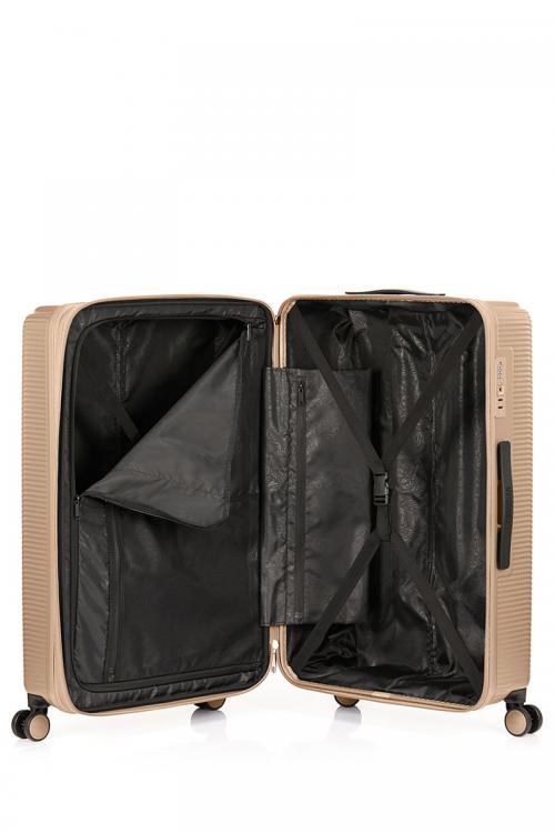 内装の両面にはクロスストラップが、左側にはポケット付きのファスナー式ディバイダーが付属し、パッキングした荷物の崩れを防ぎます。また、ファスナーを開閉するだけで簡単に容量をアップすることができる便利なエキスパンダブル機能を搭載し、フレキシブルに旅をサポートします。(機内持ち込みサイズを除く)