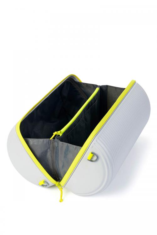 広々とした収納部には着脱可能な仕切りがついています。正面には手持ち用のハンドルが付属しています。