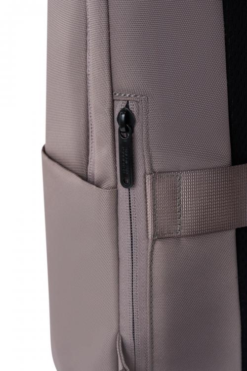 ノートPC専用の収納スペースを備え、メイン収納がいっぱいでもスマートにPCの出し入れが可能。 両サイドにボトルや折り畳み傘用ポケット。背面下部に隠しファスナーポケットで貴重品も安心。メイン荷室は明るいブルーの内装で荷物が探しやすい。