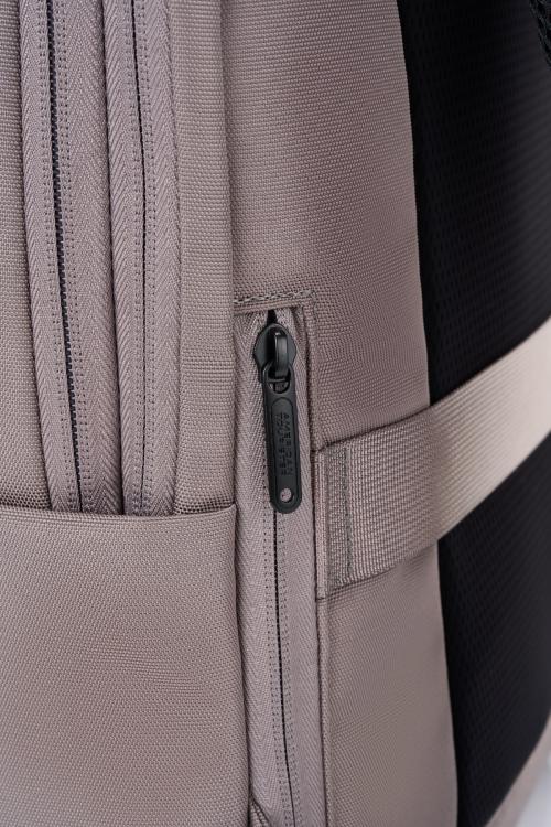 ノートPC専用の収納スペースを備え、メイン収納がいっぱいでもスマートにPCの出し入れが可能。 正面上部にクイックアクセス用ミニポケット。両サイドにボトルや折り畳み傘用ポケット。背面下部に隠しファスナーポケット。スマートスリーブ付き。メイン荷室は視認性の高いブルー内装。