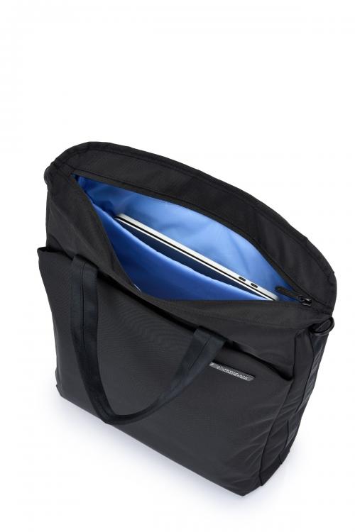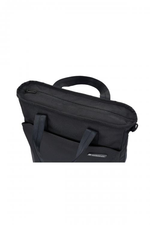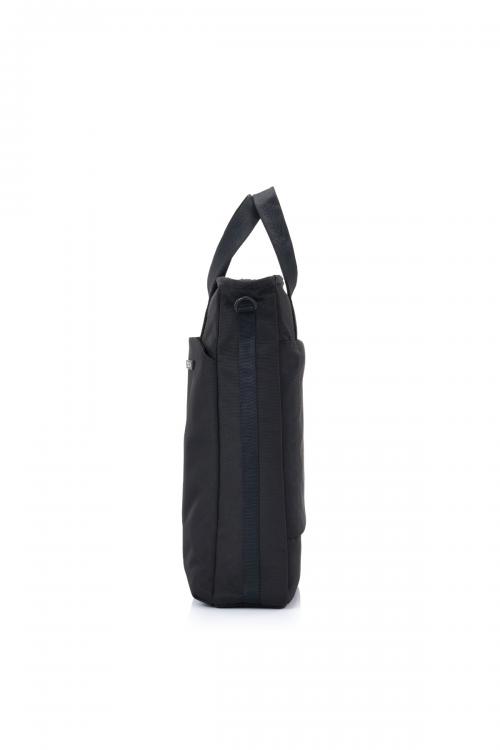 クッション入りパネルでPC収納対応。フロントポケット内にスリットポケット、ペン差し、鍵用ストラップ。背面スマートスリーブ内側にファスナーポケット。取り外し可能なショルダーストラップで2WAY仕様。