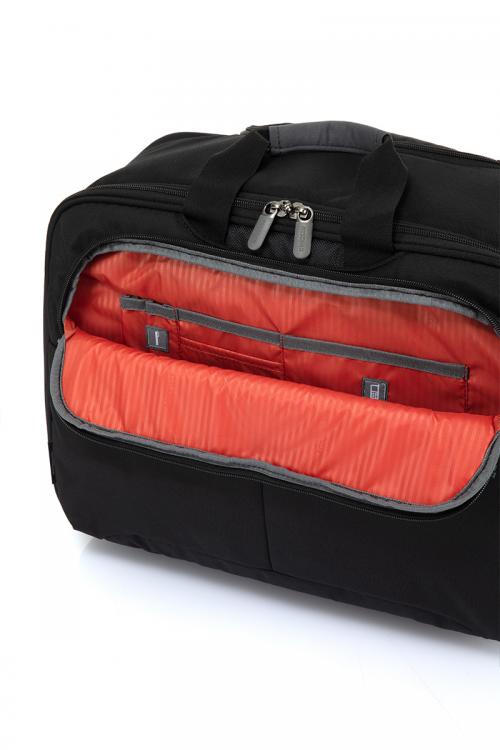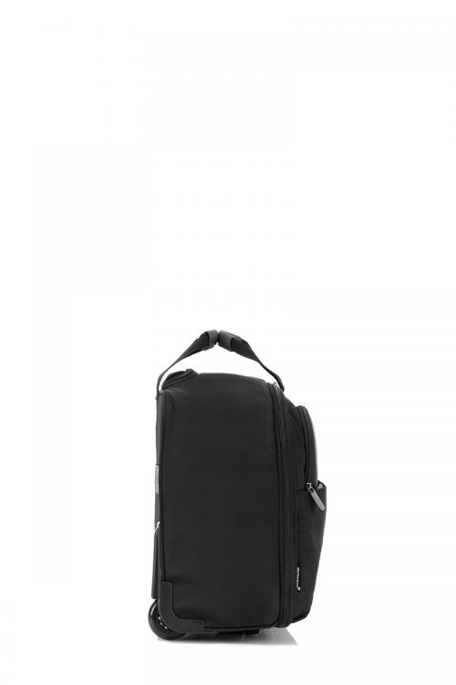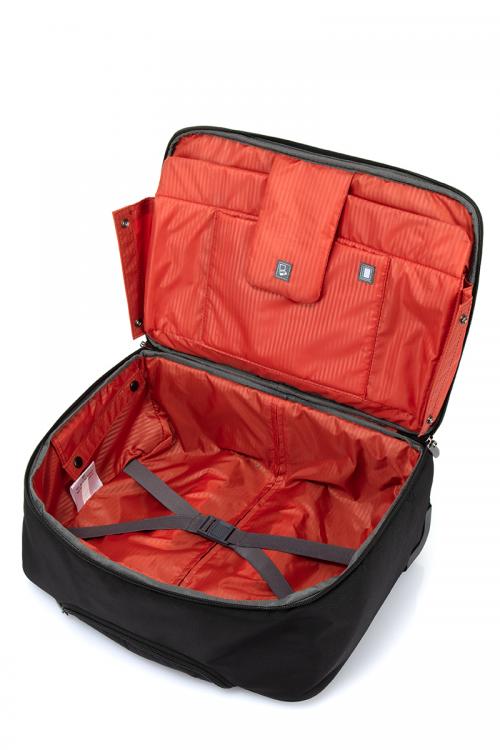 出張に便利な機内持ち込み対応サイズ。電車内でも安定性の高い2輪タイプです。収納部のクロスストラップが荷物をしっかり固定します。こぼれ止めのスナップボタンを外せばフタが大きく開き、荷造りしやすい仕様です。