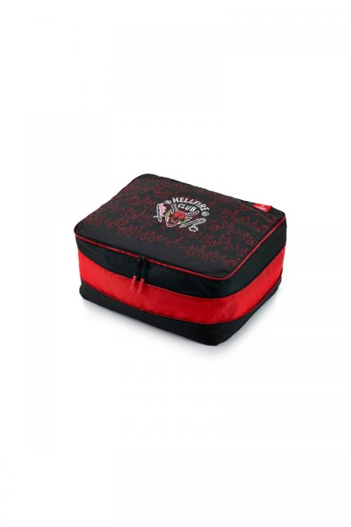 ヘルファイア・クラブのロゴを大胆にあしらったパッキングキューブ。旅のギアも、“悪魔退治”の相棒も、スマートに整理整頓できます。