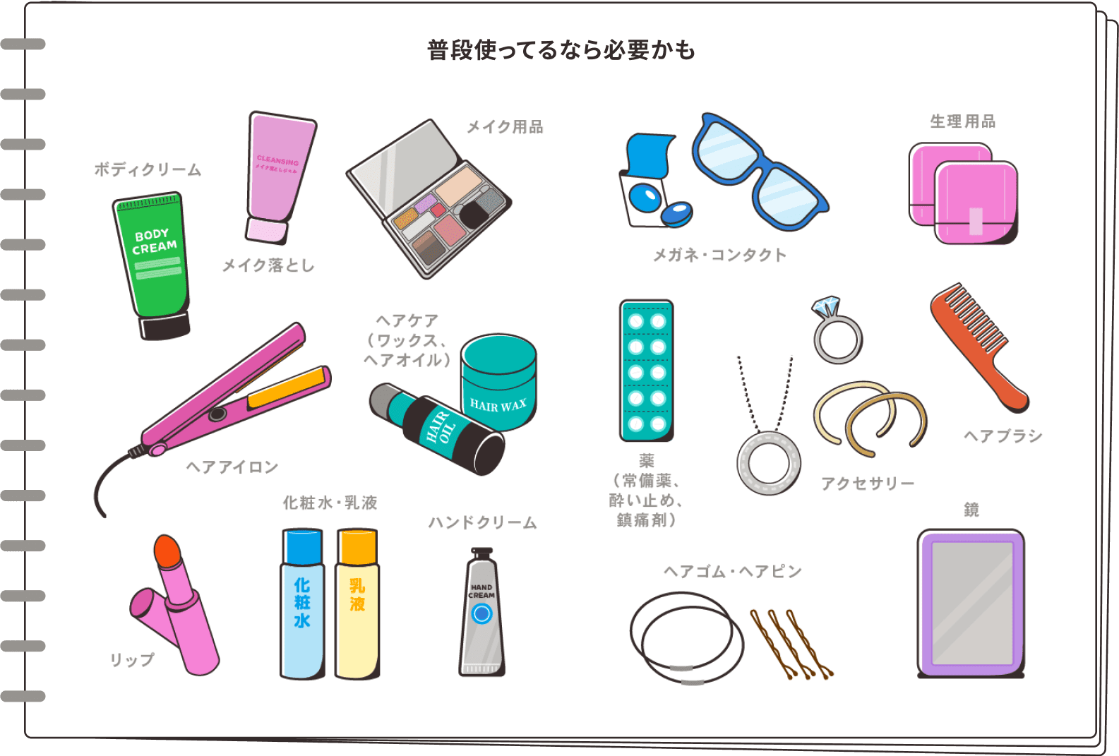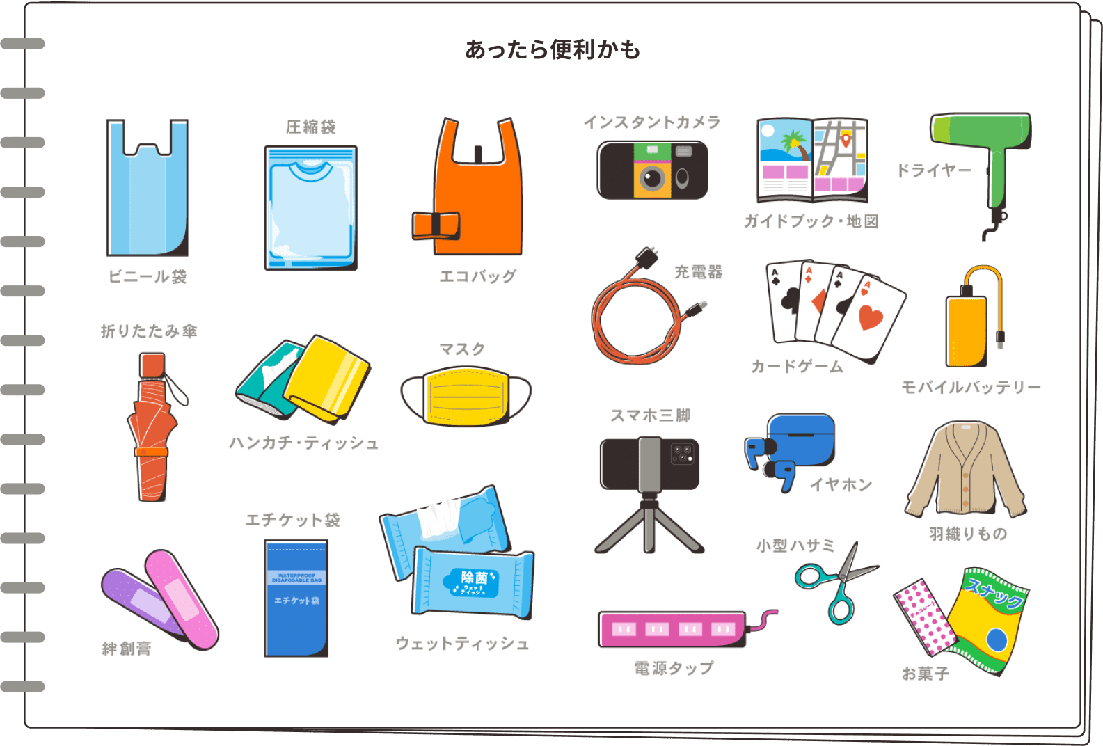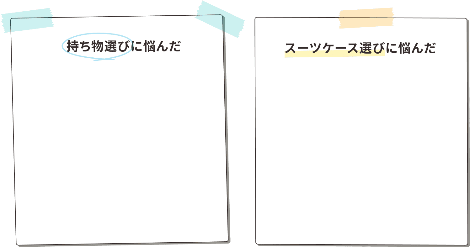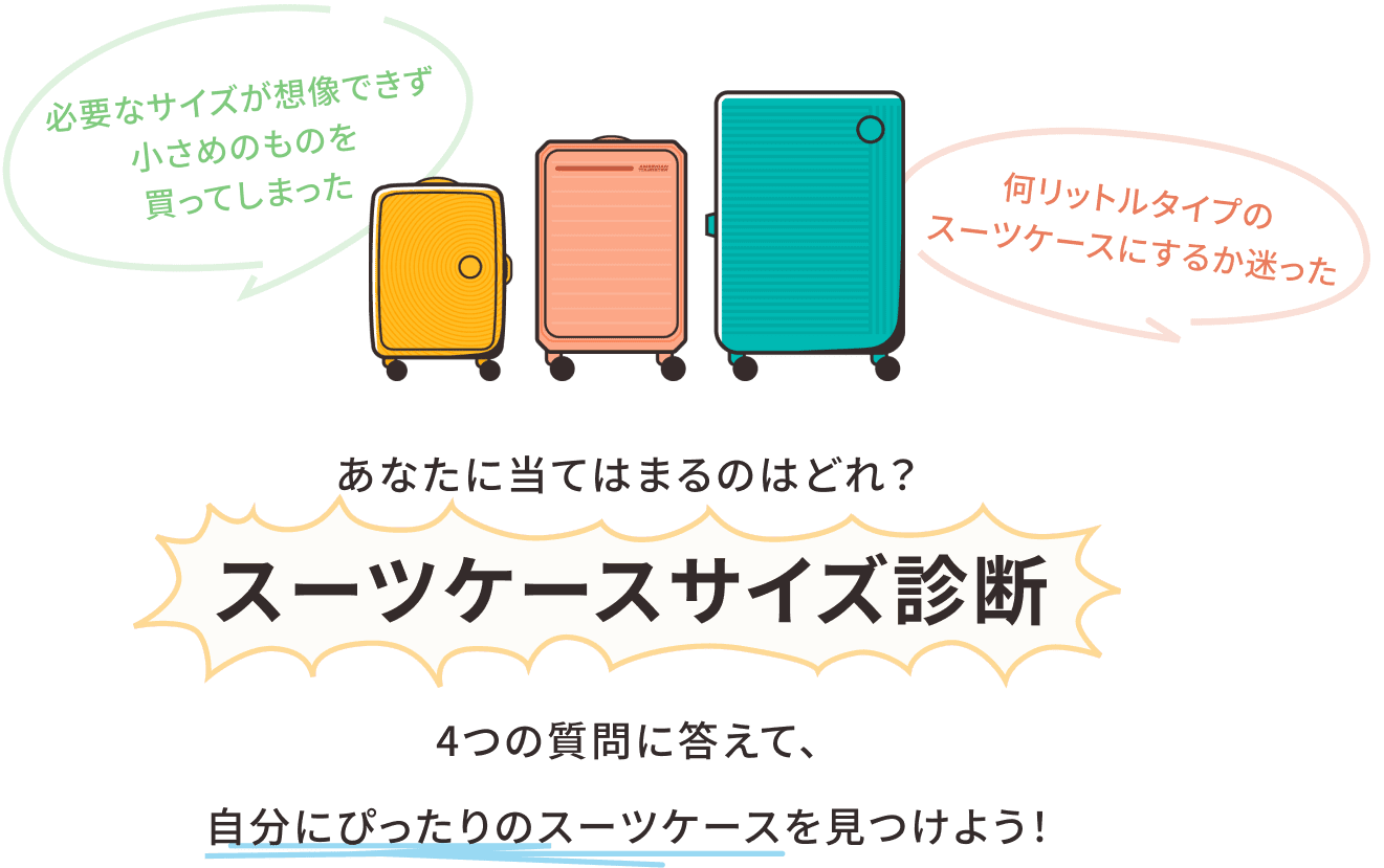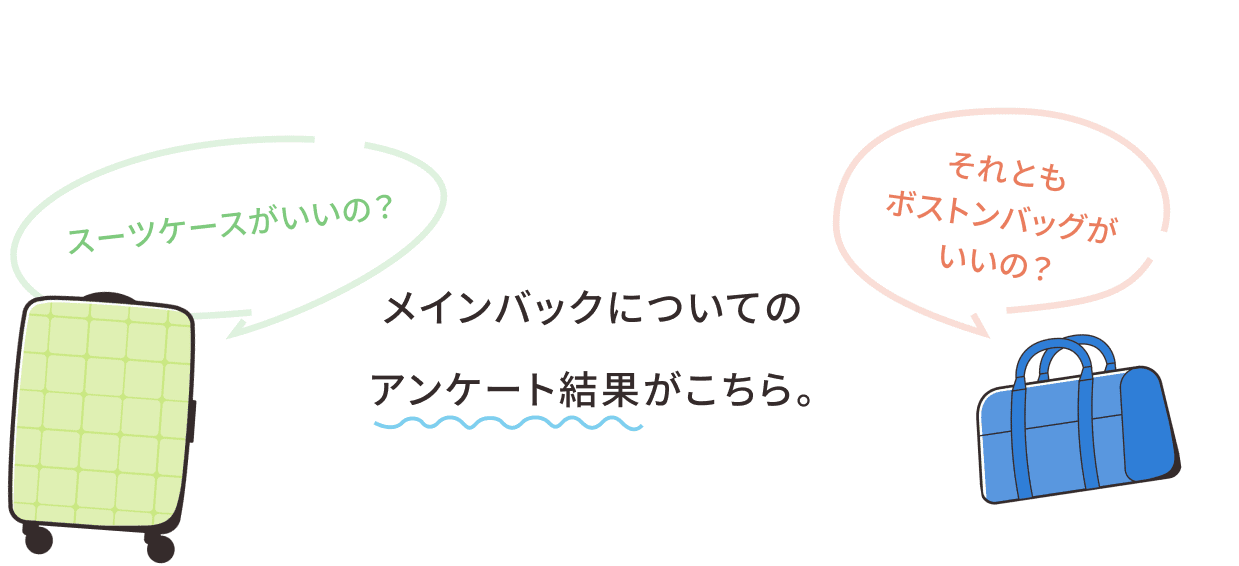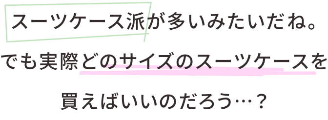 1泊=約10Lを目安に、旅先の気温や必要な荷物の量に応じてスーツケースの容量を決めよう! 普段の荷物が多かったり、お土産をたくさん買う予定なら目安より大きいものを選ぶと良いよ!